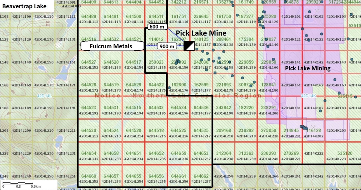 - Just 600 meters from Pick Lake Mine