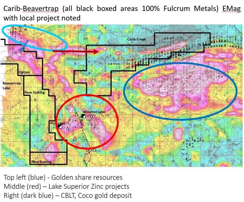 - High priority EM targets to follow up similar to high grade Lake Superior Zinc projects (Pick Lake and Winston Lake mines) adjacent east and Golden Share Resources North.