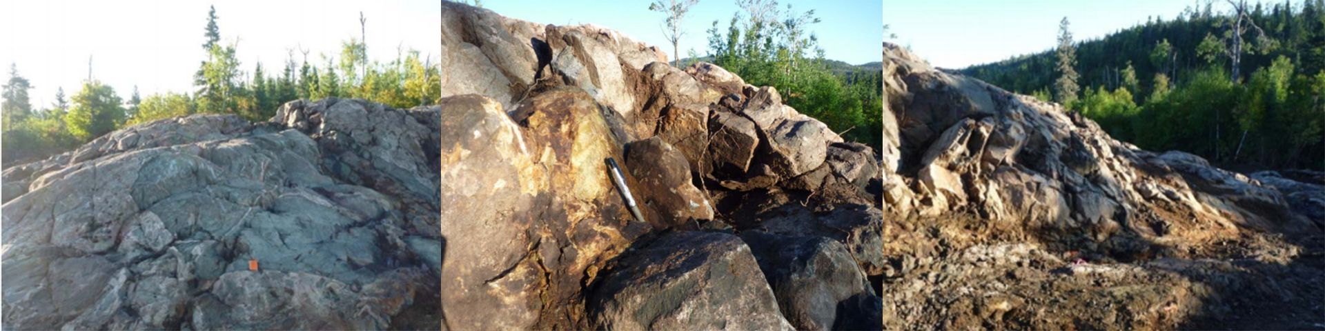 In comparison to the western end of the Terrace Bay batholith, the eastern part has been underexplored. Nevertheless, prospecting, trenching and geophysical work has highlighted the structural complexity of this area, along with several zones of strongly gold-mineralised quartz veining within the altered margin of the Terrace Bay granodiorite and adjoining metavolcanics. Small-scale excavation and mining was carried out historically on some of these zones, others were discovered more recently.