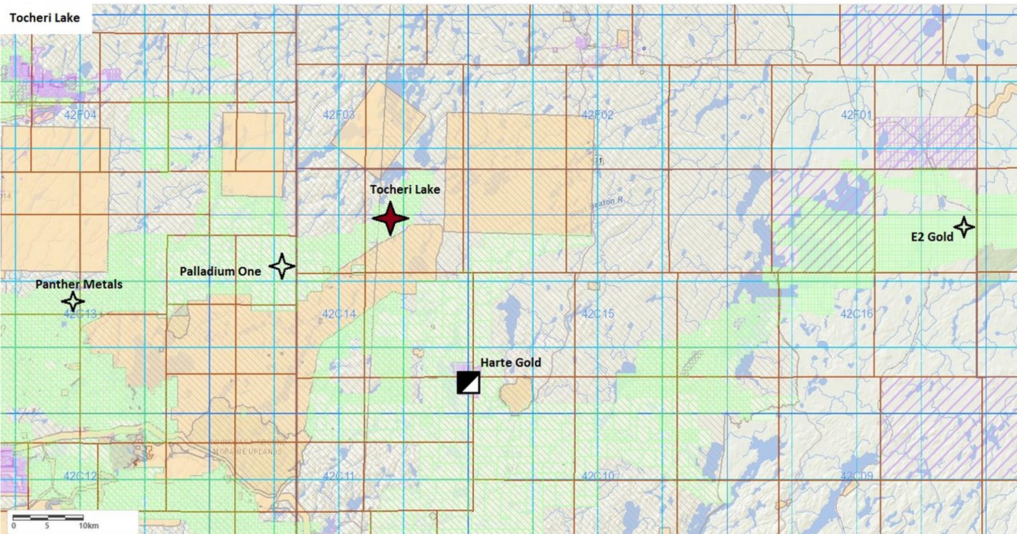 - Secures a strategic position with Palladium One to the West, Harte Gold to the South and E2 Gold to the East.